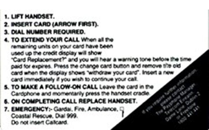 The card was initially on trial but was abandoned because they didn't operate correctly on the Monetel Cardphones installed on Irish Rail train carraiges,which made use of the Eircell (now Vodafone) Mobile Phone Network.
