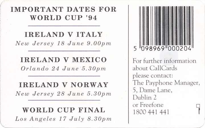 Advertising Callcard for Guinness to coincide with 1994 World Cup.