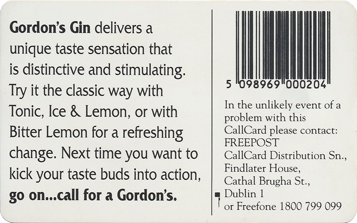 Advertising Callcard to promote Gordon's Gin, with the slogan "Go On... Call for a Gordon's".