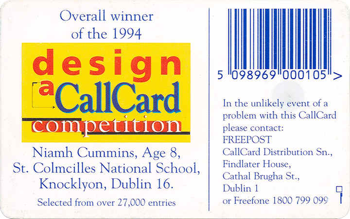 (Please note: Competition was held in 1994 and Callcard was printed and distributed in 1995)