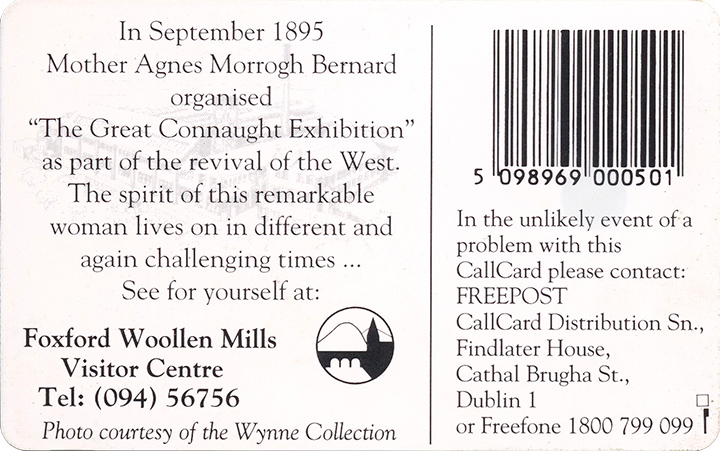 Callcard issued to commemorate the 100th Anniversary of The Great Connaught Exibition of 1895 at Foxford Wollen Mills