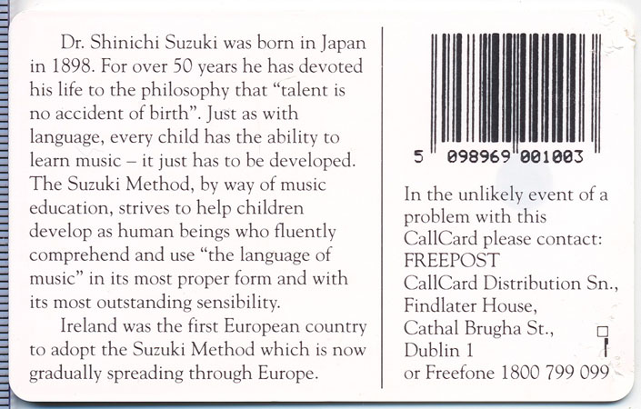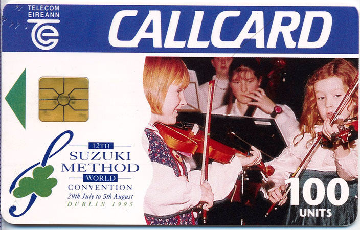 Commemorative Callcard to celebrate the 12th Suzuki Method World Convention, held in Jurys Hotel on the 29th of July to the 5th of August 1995.