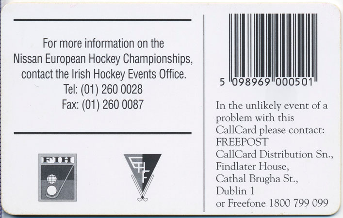 Callcard commemorating the 7th European Men's Hockey Champsionship tournament, which hosted in Dublin in August 1995