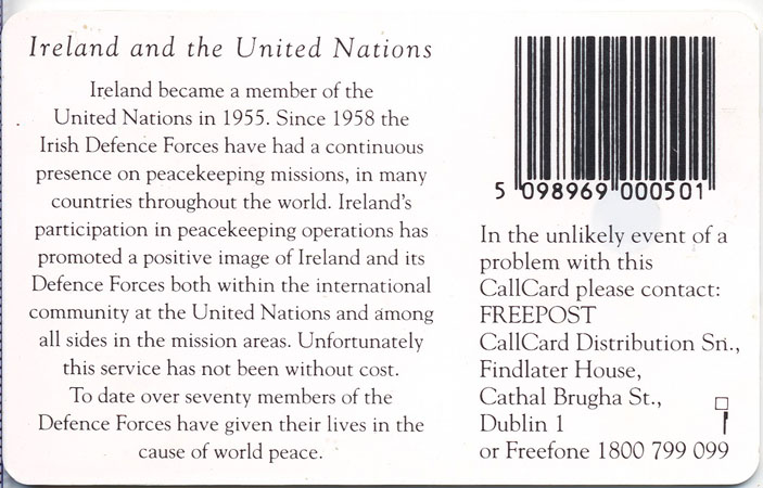 Callcard commemorating the United Nations 50th Anniversary of the UN's Charter