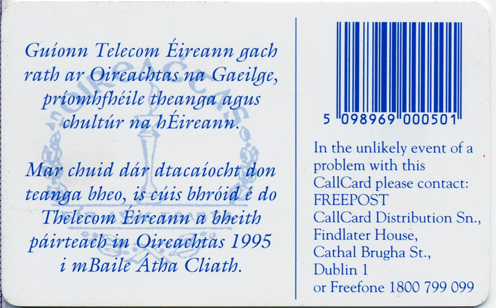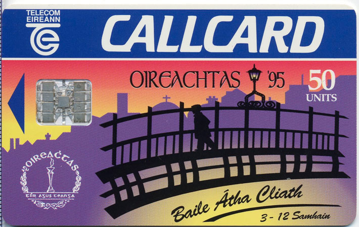 Callcard issued to commemorate the annual Gaelic (Irish Language) Cultural festival, which was hosted that in Dublin from 3rd - 12th of November 1995. The Callcard features an illustration of the Ha'penny Bridge in Dublin.