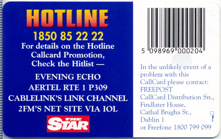 To promote the card, Free 2FM Hotline Callcards were given away to listeners who called into the show with requests.