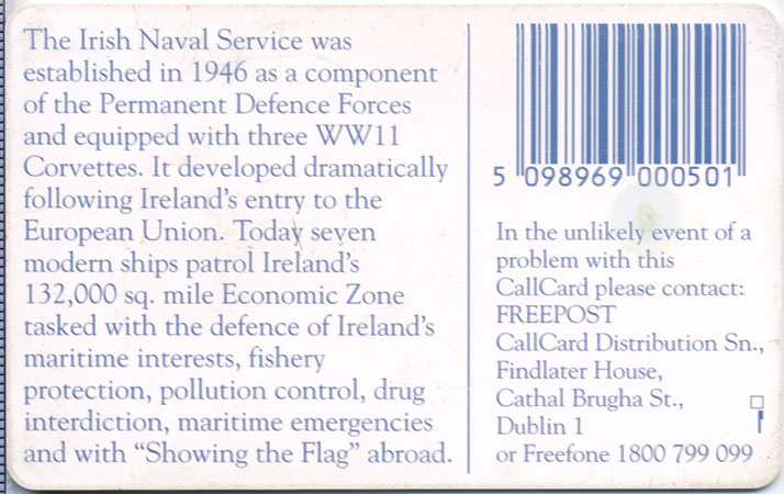 Irish Naval Service (Irish Navy) Callcard (1130)