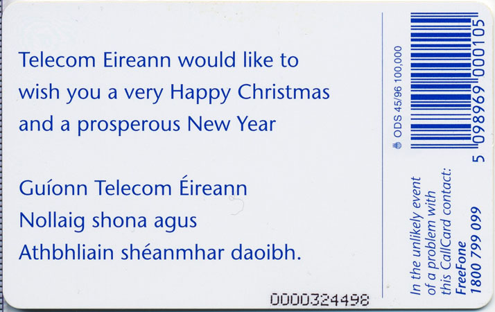 Special Callcard released for Christmas in 1996. This Callcard was also included in a special edition Cardboard sleeve available through the Callcard Collectors Club.