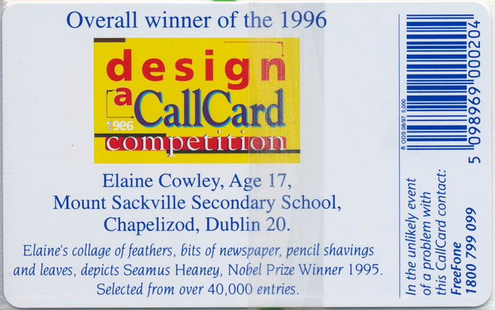 (Please note: Competition was held in 1995 and Callcard was printed and distributed in 1996)