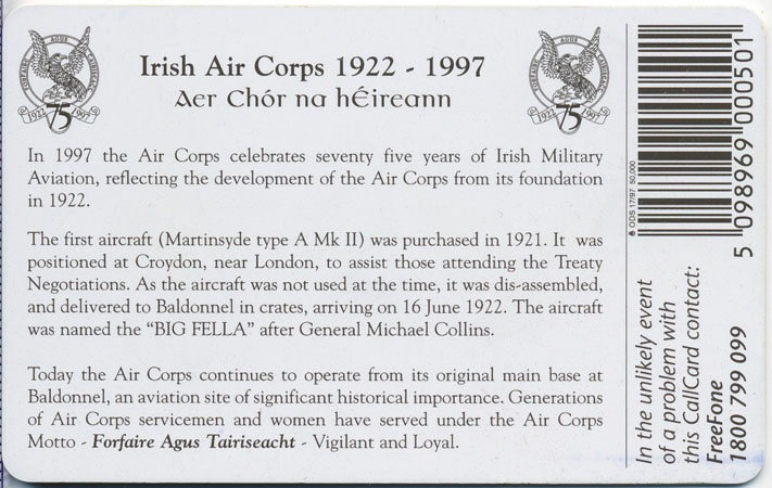 This Callcard celebrated the 75 years of the Irish Air Corps.