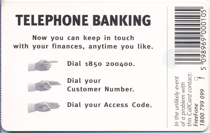 Advertising Callcard for National Irish Bank 24 hour telephone banking.