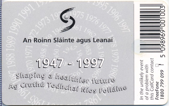 Callcard issued to celebrate 50 years of the Department of Health in Ireland.