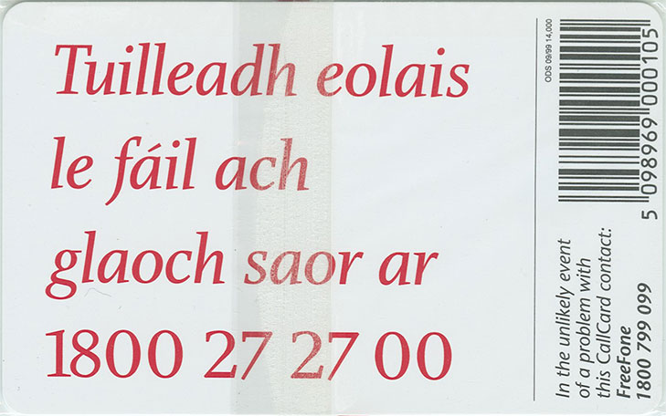 This Callcard was introduced to mark the launch of the Employees Share Ownership Plan (ESOP) Trustee. ESOP was responsible for managing the interests of Telecom Eireann employees before and during the organizations' public flotation. At the time, employees were given the opportunity to purchase shareholding of 14.9 per cent in the company which was then transferred to an employee share ownership trust. See more at ESOP website (via Wayback Machine) or the "ESOP in brief" guide.