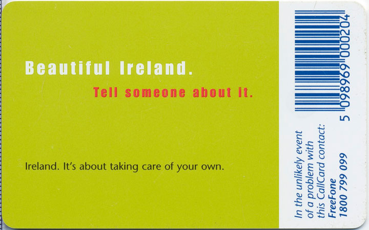 This callcard was part of a range dubbed "Beautiful Ireland", which was specifically targeted at Ireland’s five million plus visitors. The Beautiful Ireland collection, which spearheaded their Summer callcard campaign, was developed following extensive research to establish which CallCard images have greatest appeal among tourists. A number of alternatives were studied and the Beautiful Ireland collection came out on top as the clear favourite. The CallCards were sold to agents in batches of 25, with a mixture of each visual in the packs.