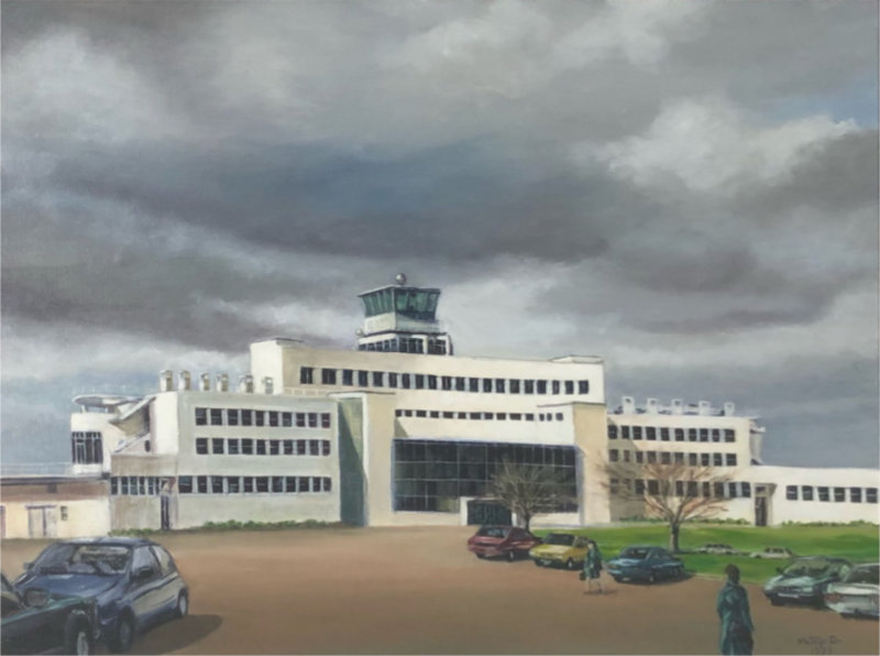 The card is a painting of the old and original terminal building at Dublin Airport. You can see a post of the painting below at this Twitter/X post.