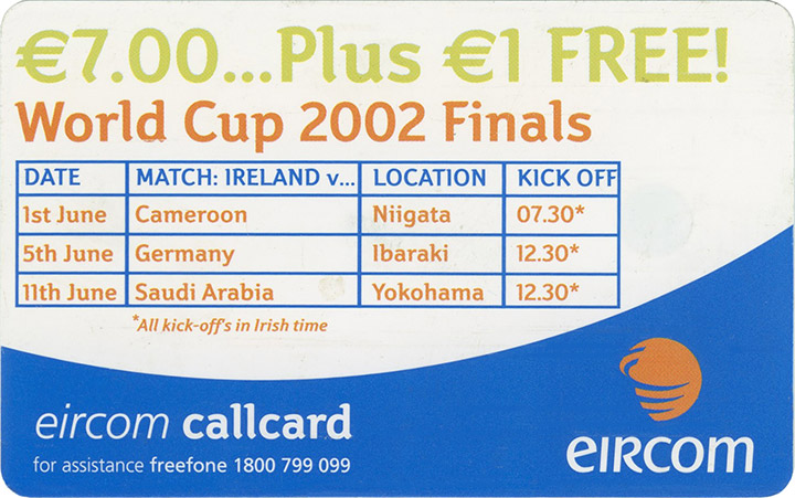 This Callcard was available as part of a set of 26 world cup 2002 Callcards. A commemorative cardboard folder was also available, which was available by post for €5.