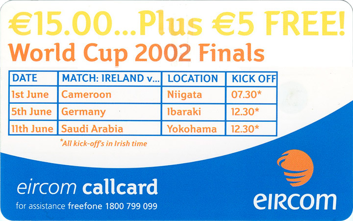 This Callcard was available as part of a set of 26 world cup 2002 Callcards. A commemorative cardboard folder was also available, which was available by post for €5.
