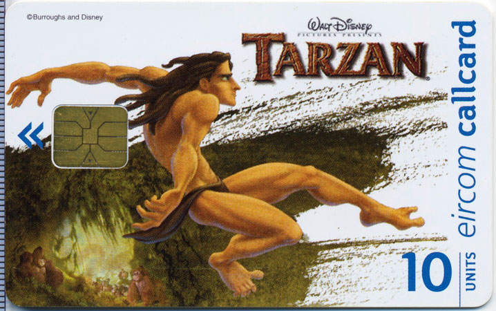 This is the first of five different types of Tarzan Callcards produced by eircom to celebrate the launch of the Disney blockbuster, which was released in cinemas from October 22nd 1999. These cards were on sale from October 21st 1999 in through eircom's 6,000 agents in Ireland.