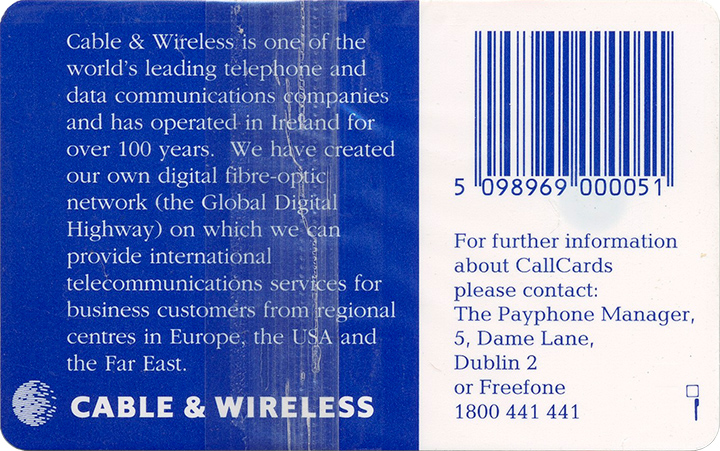 This Callcards was issued on behalf of Cable & Wireless for distribution to existing and potential customers at the Communications '93 Exhibition at the RDS in Dublin.