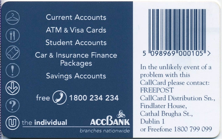 Advertising Callcard for ACC Bank. 200 Callcards were used as prizes throughout Acc Bank branches throughout Ireland.