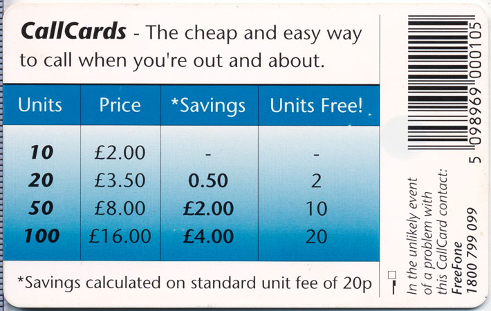 A limited edition cardboard sleeve was also available, which contained all 5 of the definitive range Callcard designs.