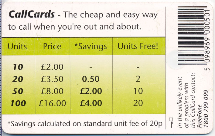 A limited edition cardboard sleeve was also available, which contained all 5 of the definitive range Callcard designs.