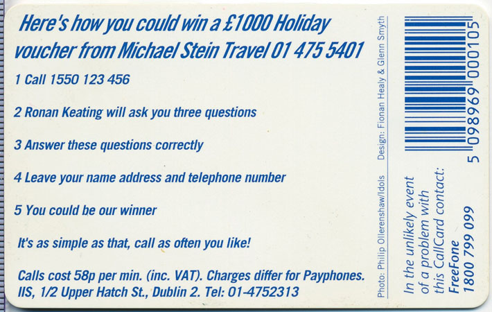 Boyzone Callcard (back)