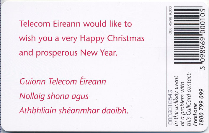 Callcard Agents also received this single Callcard from Telecom Eireann (Eircom) in a specially produced Christmas Card.