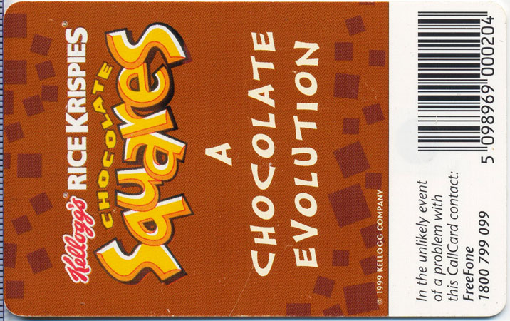 Callcard issued to promote the launch of Kelloggs Rice Krispies Chocolate Squares.