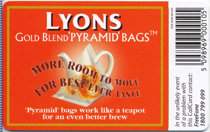 Callcard promoting one of Ireland's leading tea Brands "Lyons Tea"