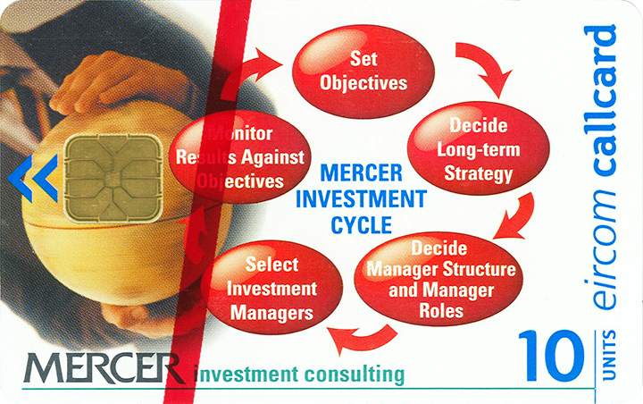 Callcard issued to promote specialist services offered by Mercer Investment Consulting.