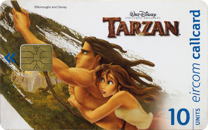 This is the first of five different types of Tarzan Callcards produced by eircom to celebrate the launch of the Disney blockbuster, which was released in cinemas from October 22nd 1999. These cards were on sale from October 21st 1999 in through eircom's 6,000 agents in Ireland.